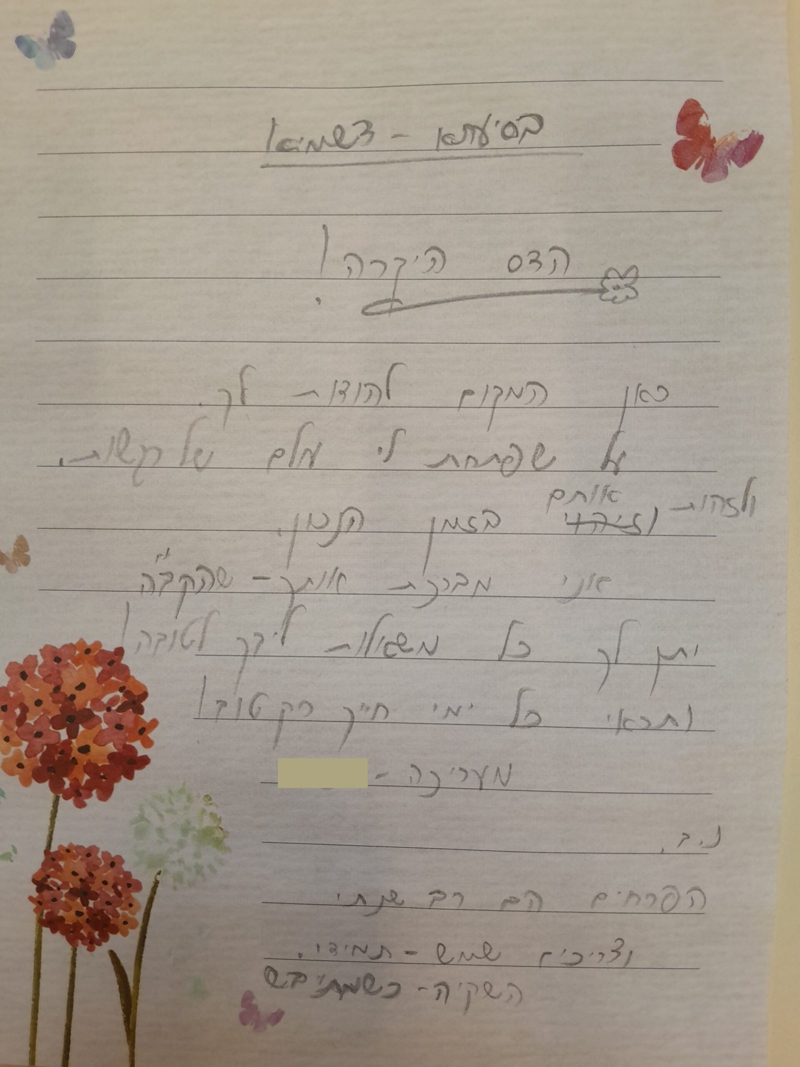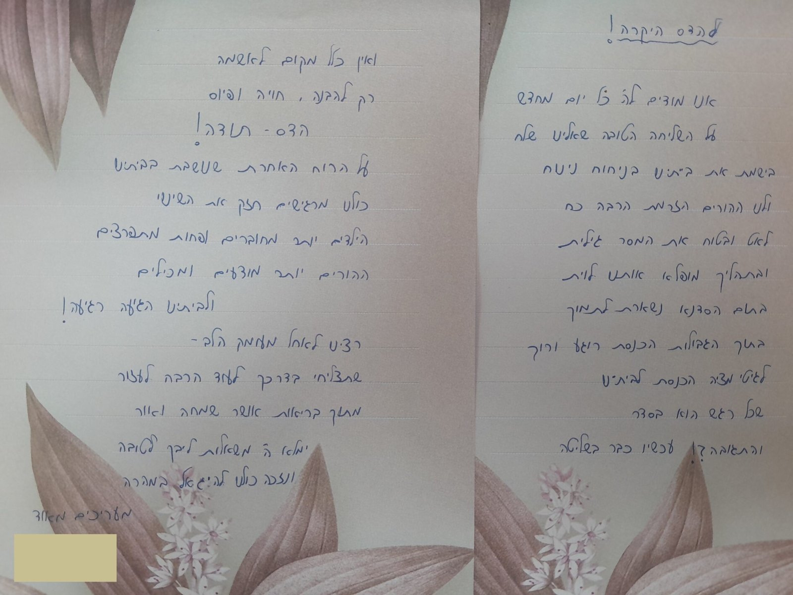 ◊ אני מאמינה שכולנו פועלים ממקום של כוונה טובה וממקסמים את מה שיש ברשותנו. בתוך כל אחד ואחת יש כוח טבעי לריפוי ולתיקון – כל מה שצריך הוא ליצור את התנאים שיאפשרו לו להתבטא. ננסה לעשות את זה יחד, עם סבלנות ואמונה.